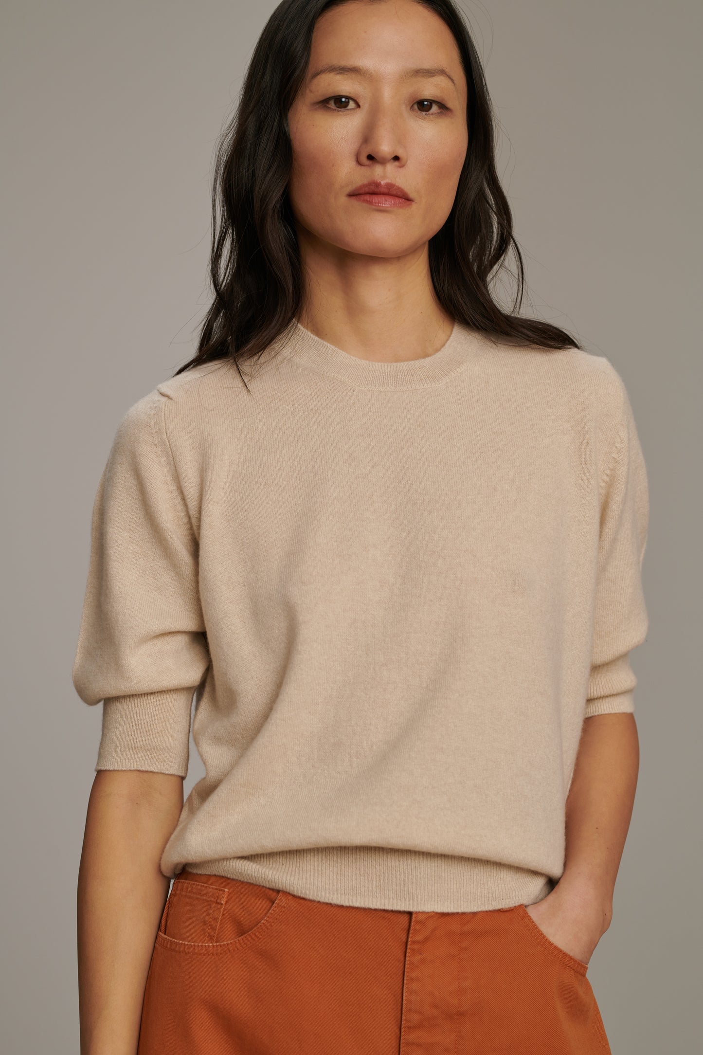 Short-Sleeve Cashmere Sweater ecru