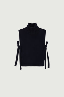 OR is our signature wool bib. The knit, compact and densely woven, provides structure and a high, straight stand-up collar that elongates the silhouette. Practical, it will warm up any outfit with style, without restricting arm movement when slipped under a jacket or coat.