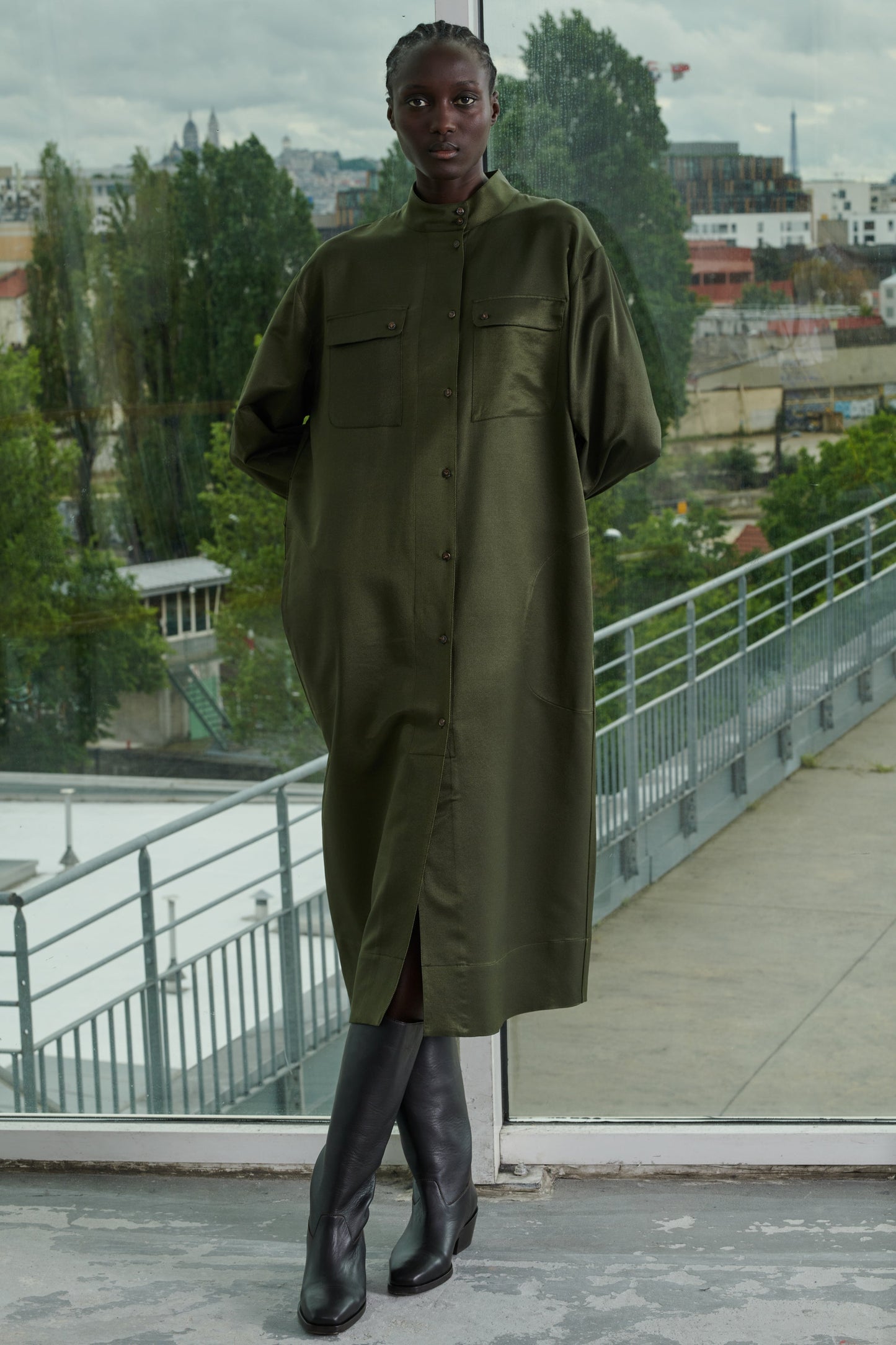 - Buttoned stand-up collar